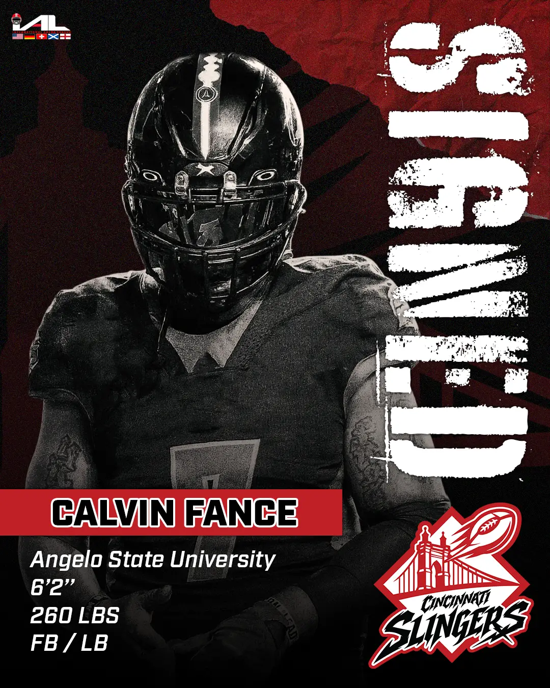 CINCINNATI, Ohio — International Arena League (IAL) — The Cincinnati Slingers have signed physical two-way player Calvin Fance, adding strength and toughness to both the defensive and offensive units.